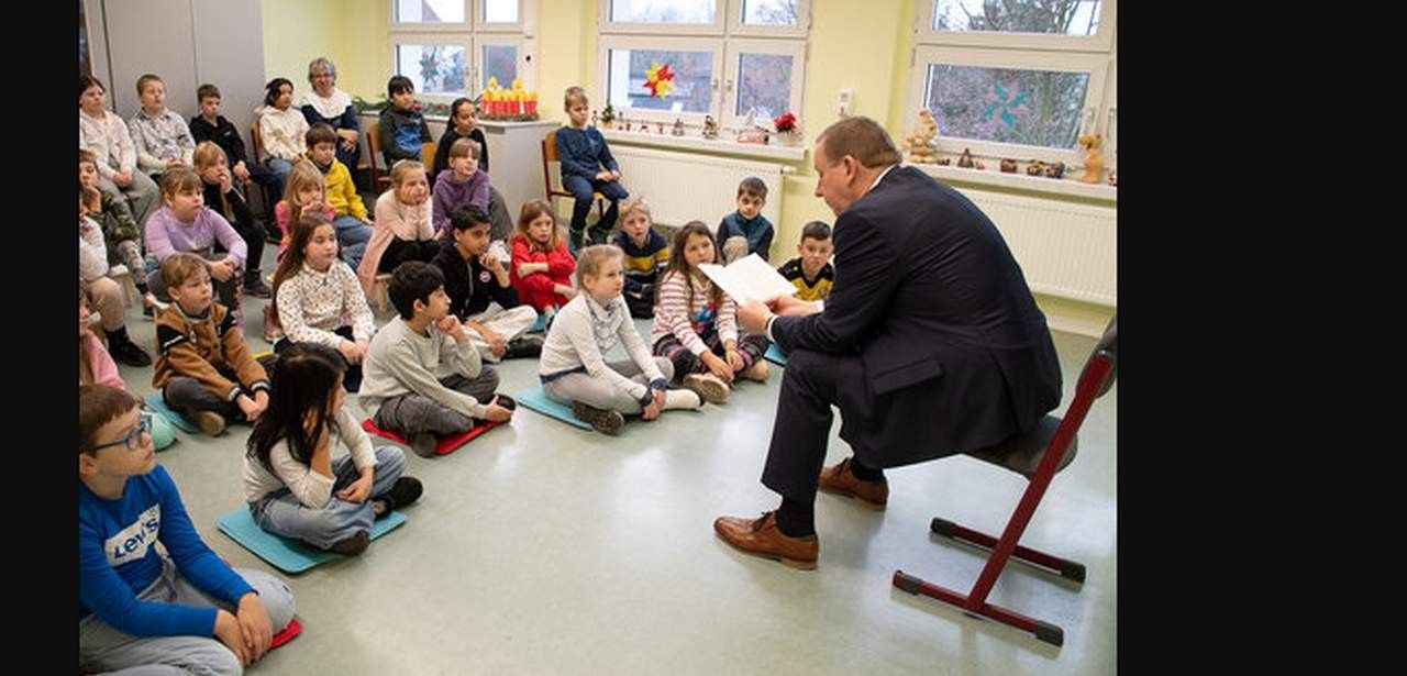 Landrat Christian Jaschinski engagierte sich beim Vorlesetag und las Schülerinnen und Schülern der dritten und vierten Klasse aus Marie Hüttners neuem Buch vor, in dem es um Freundschaft, Mut, Anderssein und Verantwortung geht. Er verwendete eine klare, kindgerechte Sprache, um die Kinder einzubeziehen und animierte sie, Fragen zu stellen sowie eigene Erlebnisberichte und Fantasiegeschichten zu teilen. Jaschinski unterstrich, dass Geschichten Türen zu neuen Ideen und Abenteuern öffnen und unterschiedliche Perspektiven vermitteln, wodurch die Lesebegeisterung gesteigert wird.